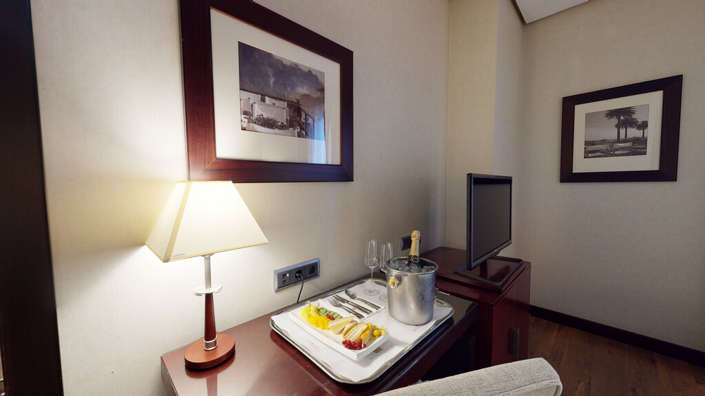Bright room with air conditioning, free Wi-Fi, minibar, satellite TV, safe, and private bathroom with hairdryer. Room amenities: Air conditioning or heating depending on the season, Desk, Bathtub, Free toiletries, Bathroom, Telephone, Satellite channels, Minibar. Includes a bottle of Cava and a welcome gift from the Chef. Late check-out until 3:00 PM at no cost. Room size: 20 m²