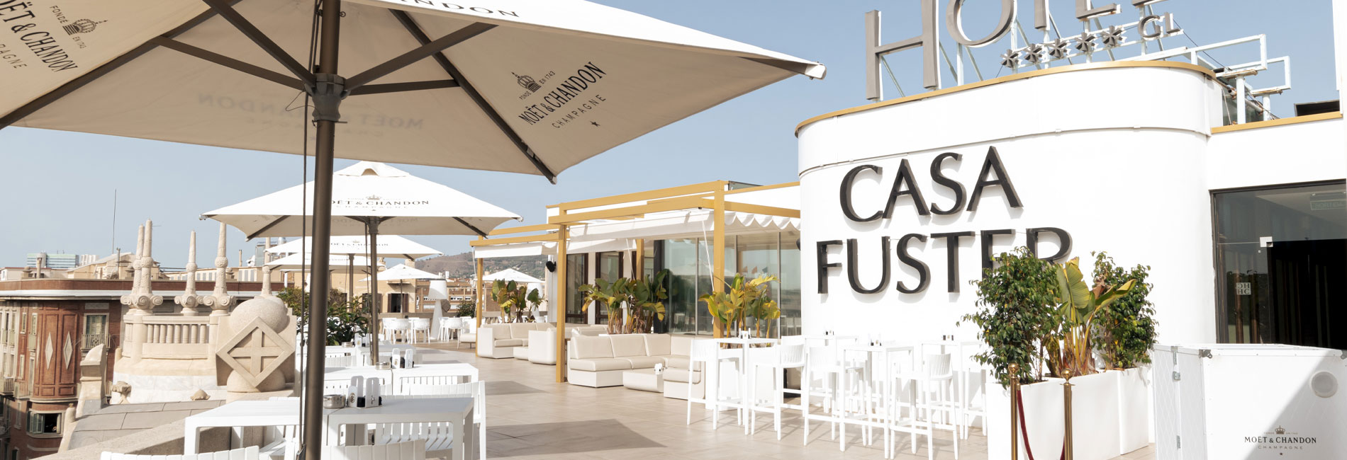 Die majestätische Panoramaterrasse des Hotels Casa Fuster gehört zweifellos zu den exklusivsten Orten in Barcelona. Fliehen Sie vor der Hitze, geniessen Sie die Sommernächte, die Meeresbrise und die luxuriöse Lounge im Freien, wo Sie bei Cocktails und Chill Out Musik den Blick über Barcelona schweifen lassen können. Die Stadt liegt Ihnen hier wahrhaftig zu Füssen, der Blick reicht bis zum Paseo de Gracia, der Sagrada Familia und dem Vergnügungspark Tibidabo.