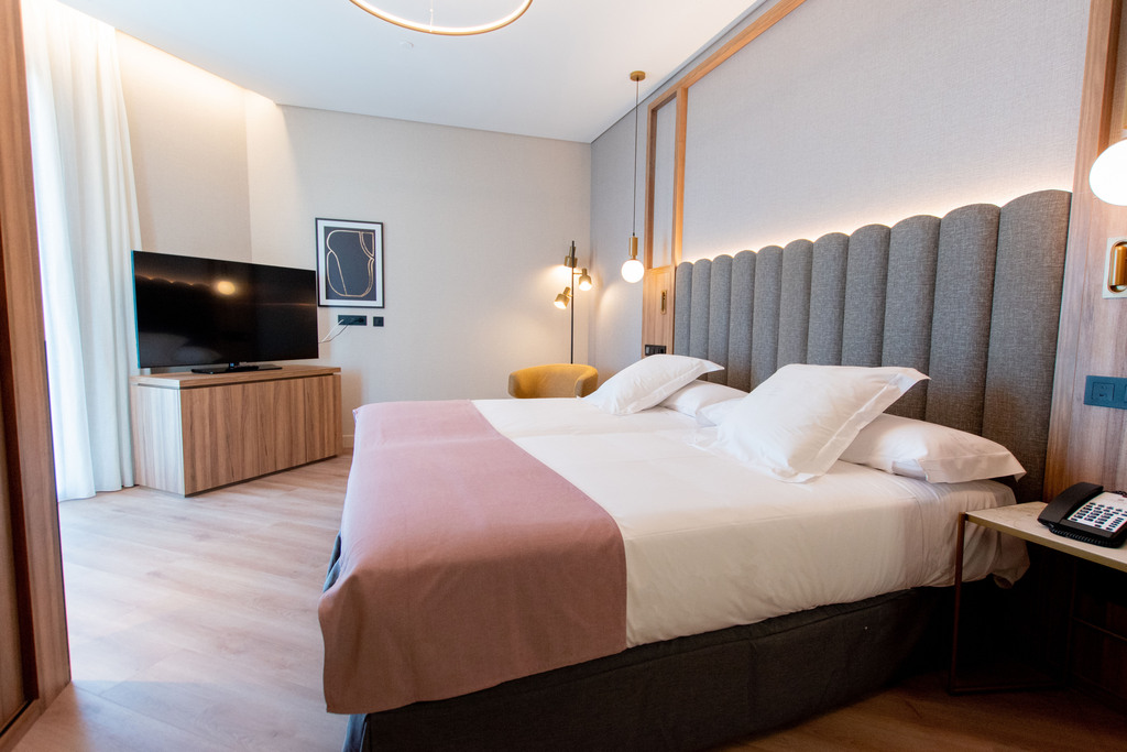 Dimensiones 85 a 110 m2. Compuesta por 1 habitación Junior Suite y una habitación Estándar. Recibidor y aseo de cortesía, salón y cuarto de baño completo