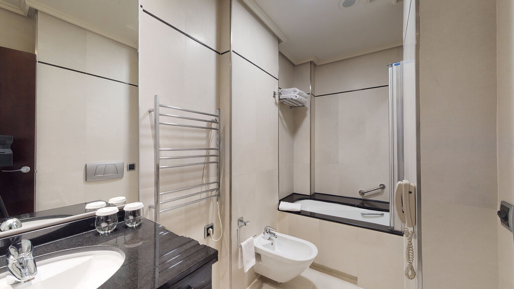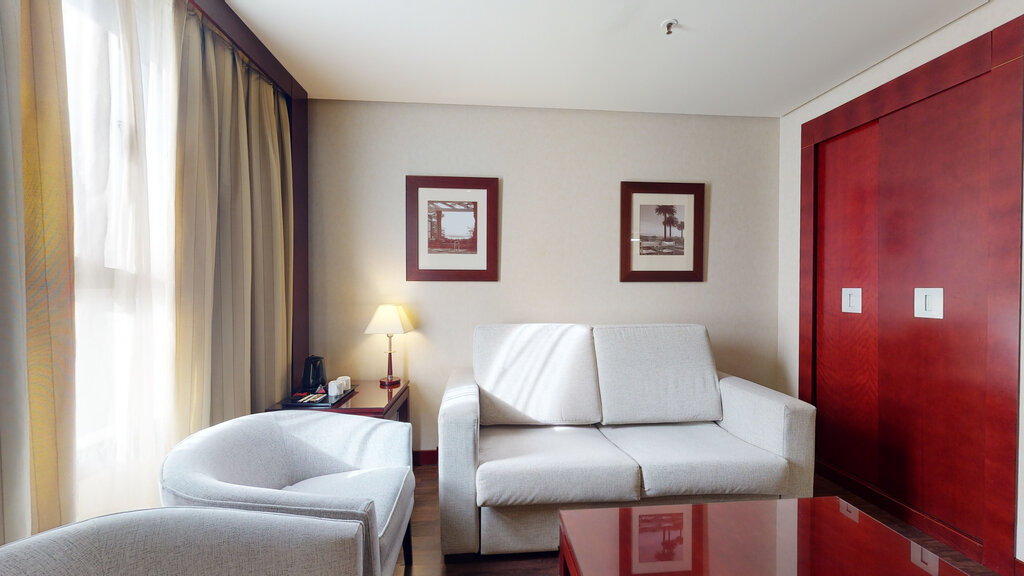 Esta espaciosa habitación familiar cuenta con dos espacios independientes comunicados entre sí. Cuentan ambos con aire acondicionado, conexión Wi-Fi gratuita, TV de pantalla plana, caja fuerte y minibar. El baño privado incluye secador de pelo. Con salón privado independiente. Equipamiento de la habitación: Aire acondicionado o calefacción según temporada, Escritorio, Bañera, Artículos de aseo gratuitos, Baño, Teléfono, Minibar